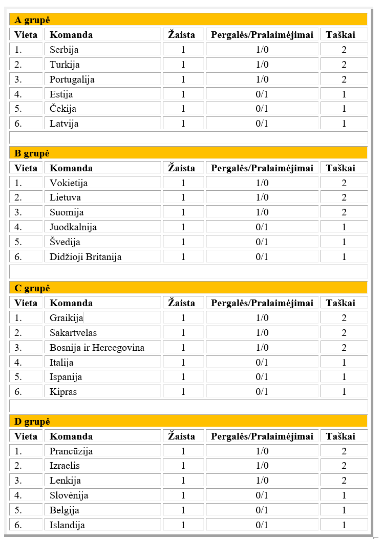 Europos čempionato turnyrinė lentelė (Rugpjūčio 28 d.)