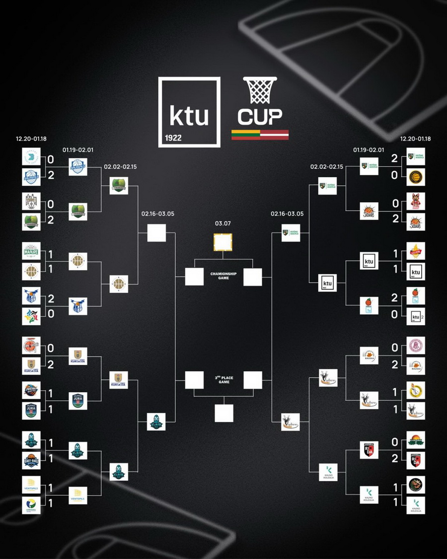 Turnyre gruodžio mėn. startavo 20 Lietuvos ir 12 Latvijos klubų. Iš 32 komandų šiuo metu kovą dėl vietos finaliniame etape tęsia devyni klubai: KK „Trakai-Trakų SC“, Vilniaus rajono krepšinio klubas, Skuodo „KKSC-Kuršasta“, Anykščių „KKSC-Elmis“, Kauno „Žalgiris-Nordclinic“, Kauno technologijos universitetas, Švenčionėlių „Rida“, Kauno kolegija ir vienintelė Latvijos atstovė – Gulbenės „Buki/BJSS“.