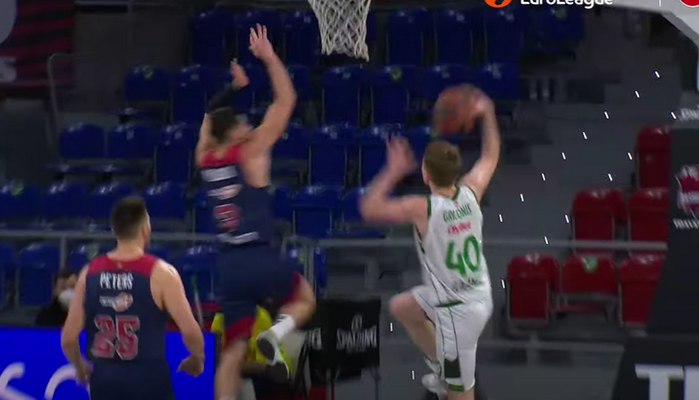 Po Thomaso Walkupo perdavimo per pusę aikštės išpuolį fantastišku skrydžiu ir dėjimu į Vitorijos "Baskonia" krepšį baigė Marius Grigonis.