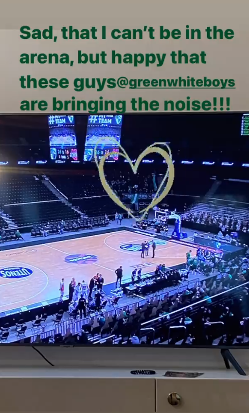 „Liūdna, kad negalėjau būti arenoje, bet džiaugiuosi, kad šie vaikinai, Žalgirio fanai, kelia triukšmą“, - rašė Katja.