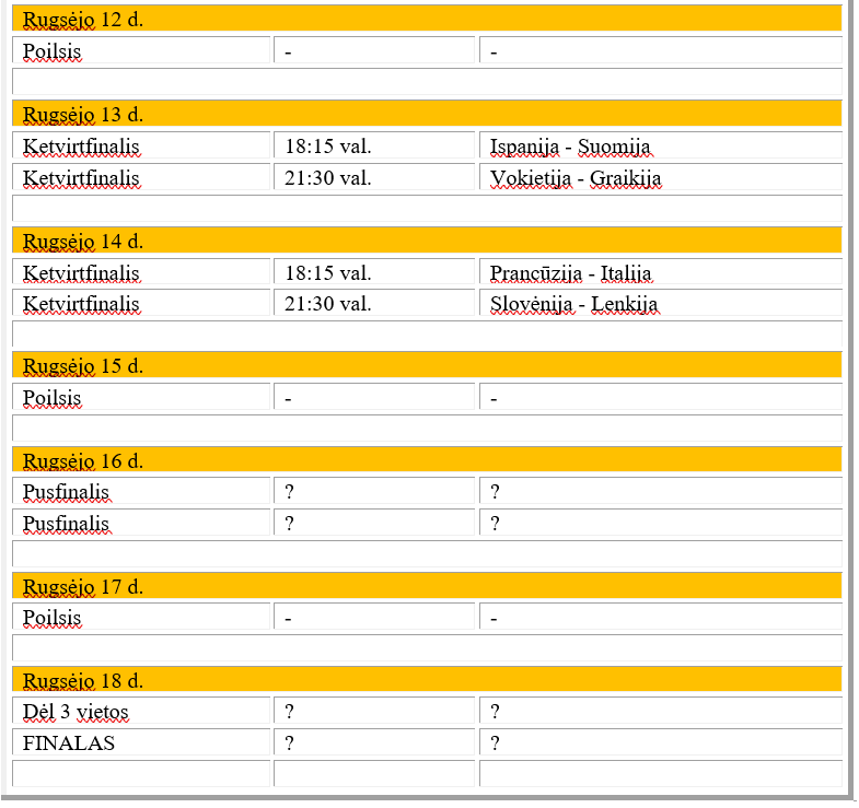 Europos čempionato ketvirtfinalio etapo tvarkaraštis