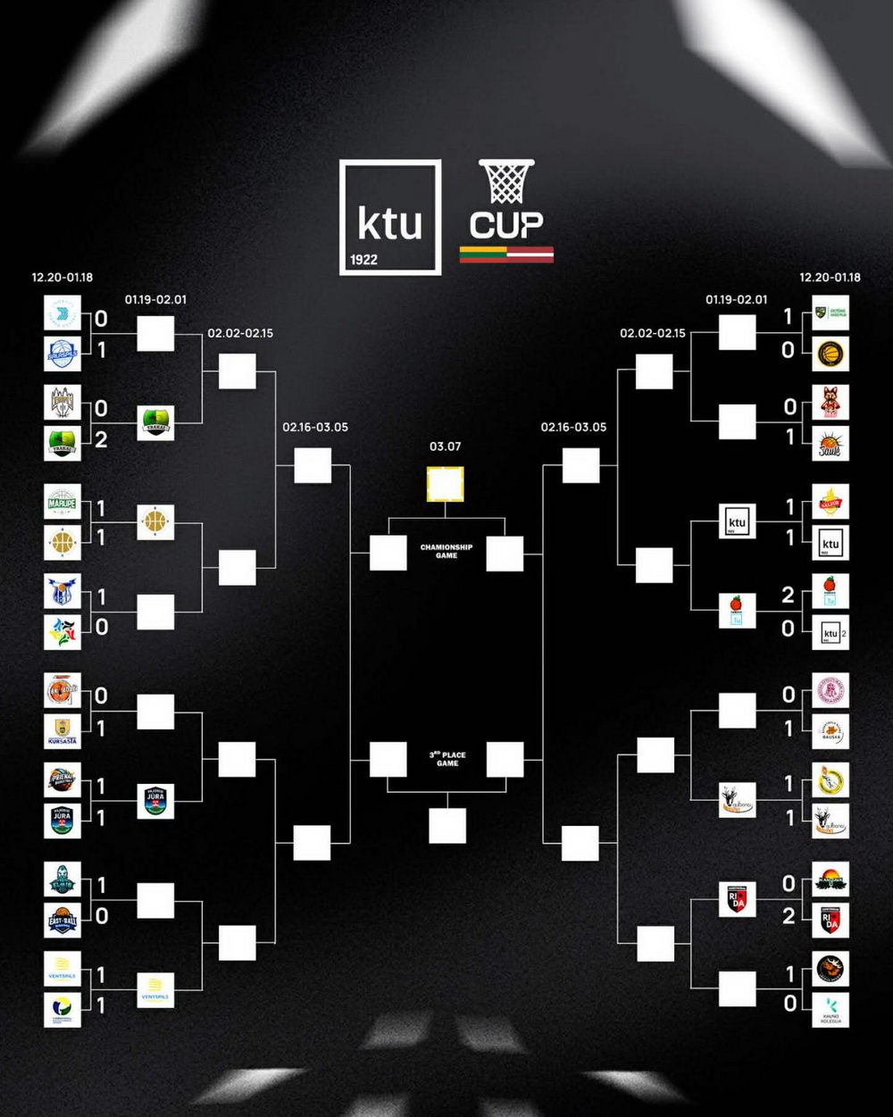 KTU taurė ir toliau pateisina lūkesčius – pirmajame etape netrūko nei atkaklių dvikovų, nei triuškinamų pergalių, o nuo aštuntfinalio prasidėsiantis vieno minuso formatas žada dar daugiau intrigos. Kol kas vietą antrajame etape jau užsitikrino 3 Latvijos ir 5 Lietuvos komandos, o turnyro kulminacija žiūrovų lauks kovo 7 dieną Kaune.